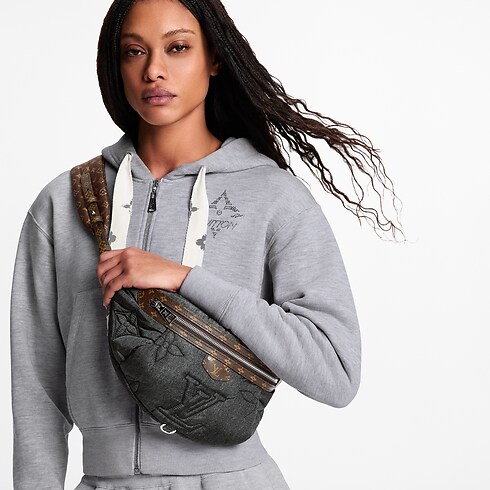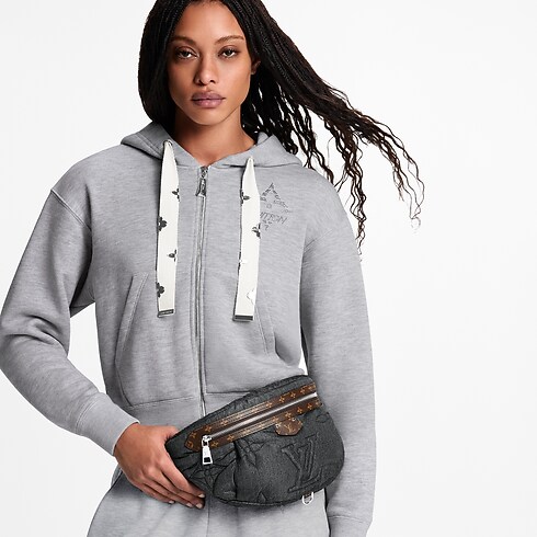 La cangurera High Rise se presenta en el exclusivo acabado Puffygram de esta temporada y aporta un aire técnico y deportivo a la Colección LV Ski. Está confeccionada en nailon resistente al agua de color Black Jeans en un efecto trompe l’oeil que simula la apariencia de denim. Este modelo funcional se realza con un ribete en piel Monograma e incorpora una correa para llevarla cruzada.