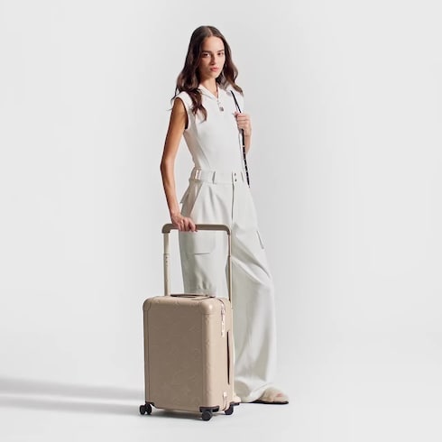 La nueva maleta Horizon está confeccionada en exquisita piel flexible de un frío tono gris y luce el emblemático motivo Monogram de Louis Vuitton oversize. Este modelo compacto, ideal como equipaje de mano, es muy fácil de llevar gracias al tirador extralargo y las cuatro ruedas dobles. Un accesorio de viaje práctico y femenino con un sutil aire distintivo de la Maison.
