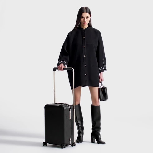 Esta nueva edición de la maleta Horizon, en exquisita piel flexible de elegante color negro, luce una versión oversize del emblemático motivo Monogram de Louis Vuitton en relieve. Presenta un diseño compacto, ideal para utilizarla como equipaje de mano, así como un tirador extralargo y cuatro ruedas dobles que permiten transportarla fácilmente. Un accesorio de viaje práctico y femenino que se realza con sutiles detalles distintivos de la Maison.