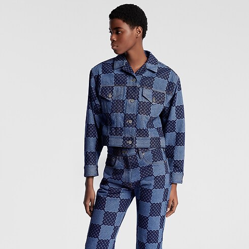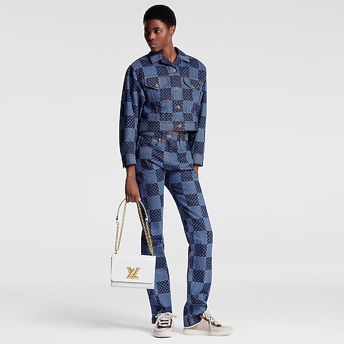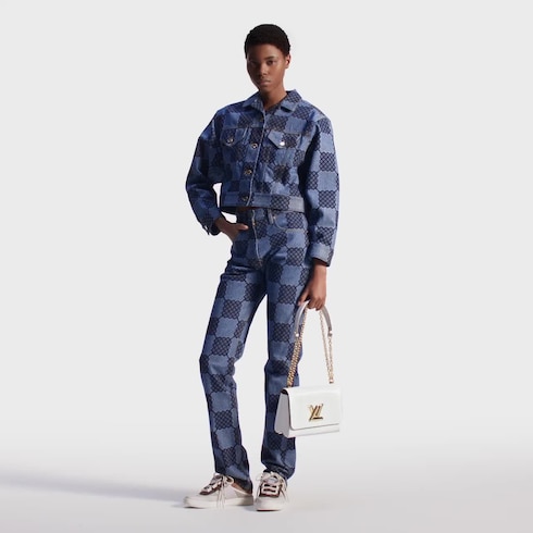Estos clásicos jeans de cintura alta y corte recto son ideales para el día a día. El cómodo modelo luce una apariencia atemporal con el motivo integral Damier y se realza con llamativos pespuntes en tono amarillo. La pieza se completa con un parche en Canvas Monograma en la parte posterior como toque distintivo de la Maison.