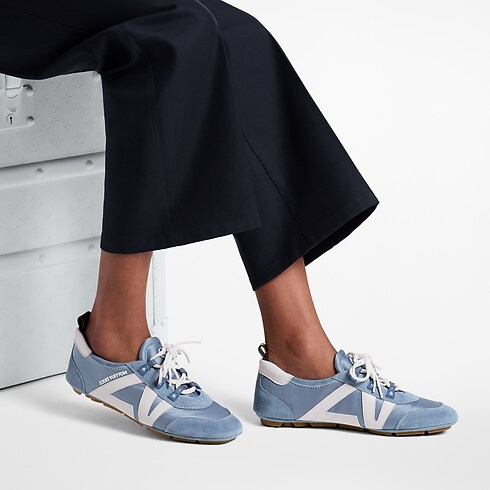 El tenis Sneakerina de iniciales LV fusiona satén técnico con piel de becerro gamuzada. Este modelo vanguardista, que reúne la comodidad de un tenis y la elegancia de una bailarina, presenta una confección sacchetto que aporta flexibilidad y ligereza. El empeine se realza con distintivos de la Maison, como la flor Monograma en las presillas de los cordones y las iniciales LV en el lateral.