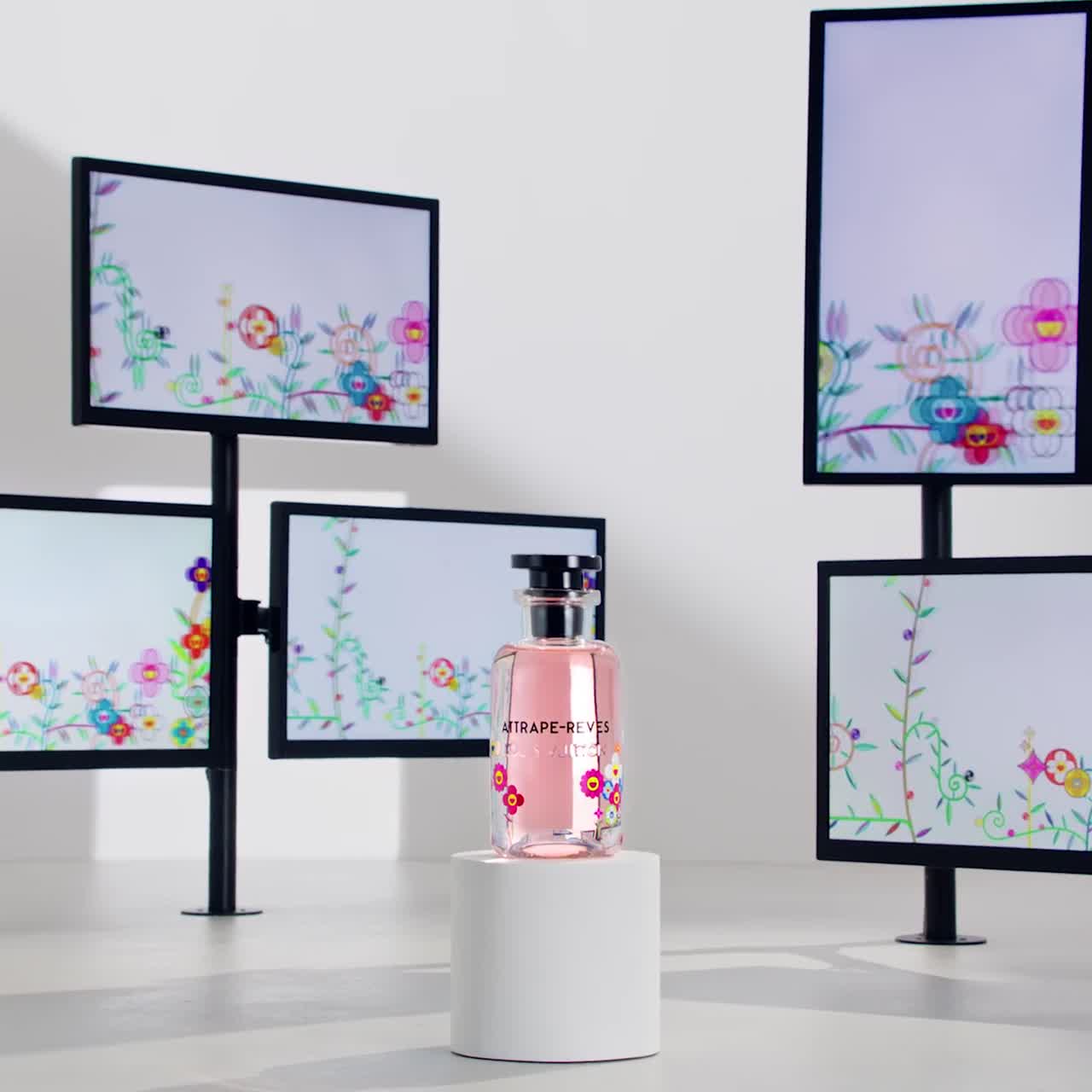 La nueva y colorida edición del perfume LV x TM Attrape-Rêves alude a un jardín aromático donde se encuentran la fantasía y la realidad como parte de la exclusiva colaboración Louis Vuitton x Takashi Murakami. Fiel al estilo Superflat del artista japonés, la fragancia presenta una botella con un elegante diseño floral, el cual evoca un aire juvenil en perfecta armonía con el carácter luminoso de este aroma. Esta creación del maestro perfumista Jacques Cavallier Belletrud ofrece una encantadora composición de contrastes: polvo de cocoa crudo se mezcla con elegantes peonías y revela un corazón de pachuli con alegres notas de lichi en una llamativa esencia que celebra el sentido de la fascinación.