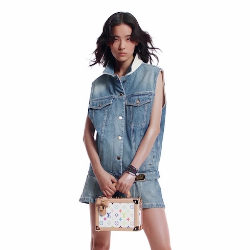 La elegante bolsa Petite Valise de silueta rectangular rinde homenaje a los emblemáticos baúles de viaje de la Maison en una versión compacta. La pieza reinterpreta el emblemático motivo Monograma en llamativos tonos arcoíris inspirados en el exuberante mundo del artista japonés Takashi Murakami. El modelo incorpora brillantes piezas metálicas doradas, un forro en intenso color rosa, un broche S-Lock y detalles en piel natural, como el asa superior y los ribetes.