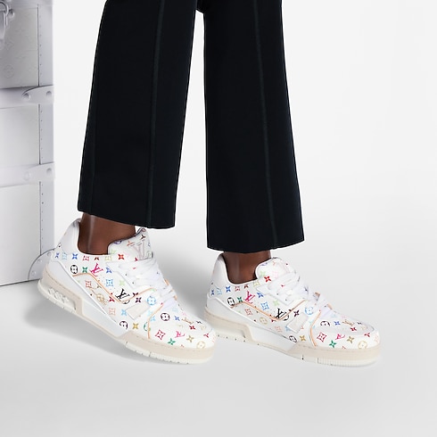 Estos tenis LV Trainer se reinventan en el llamativo Canvas Monograma Multicolore creado por el artista Takashi Murakami para Louis Vuitton. El modelo luce unos bordes en piel, que evocan el clásico calzado de baloncesto. El diseño se completa con un distintivo Louis Vuitton en cursiva y el número 54, una referencia a 1854, el año de fundación de la Maison.