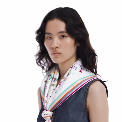 Este pañuelo Monograma Multicolor LV x TM, confeccionado en brillante seda pura, pertenece a la colaboración con el renombrado Takashi Murakami. El exquisito diseño luce una reinterpretación del emblemático motivo de la Maison creada por el artista japonés y estampada en 33 colores de alta definición. Este llamativo patrón se muestra sobre un inmaculado fondo blanco y se realza con un borde a contraste.