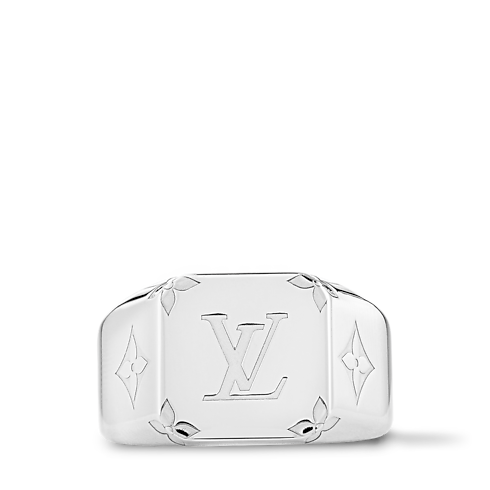 Este anillo Monogram Signet de la colección de joyería Monograma presenta un diseño de marcado estilo masculino. La pieza luce un sutil motivo Monograma grabado realzado con un brillante acabado plateado. El modelo geométrico de líneas depuradas es ideal para el día a día.