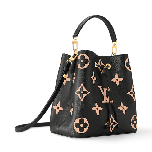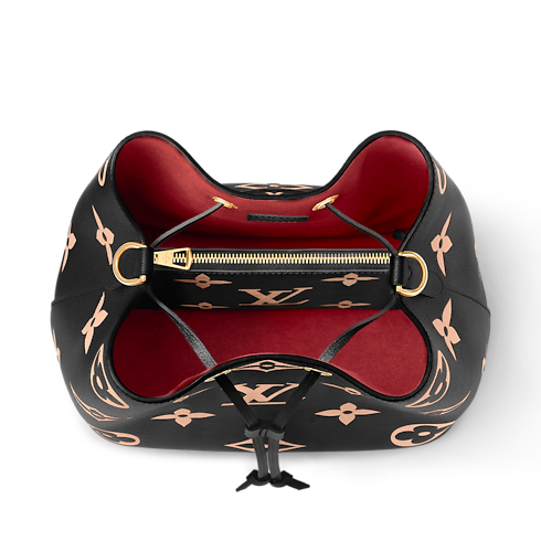La bolsa bombonera NéoNoé MM está confeccionada en piel granulada con un exclusivo acabado. El modelo luce un notable motivo de las iniciales LV y flores Monograma impreso y posteriormente grabado en relieve. Esta funcional pieza cuenta con un bolsillo interior con cierre y una correa ajustable que permite llevarla al hombro o cruzada.