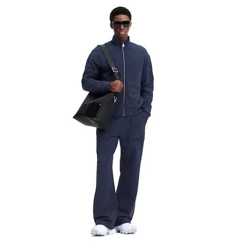 Este pantalón deportivo, confeccionado en suave punto de algodón orgánico, se realza con sofisticados logotipos Monograma con efecto grabado en los bolsillos. La pieza presenta un cordón ajustable en la cintura, y luce un atemporal tono azul marino, fácil de combinar con distintos estilos en todas las temporadas. La prenda puede combinarse con la chamarra a juego para crear un conjunto refinado, ideal para viajar.