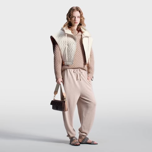 Este pantalón jogger es una reinterpretación de una clásica prenda deportiva en exquisito tejido de cachemir que brinda un estilo relajado y elegante. El modelo presenta una cómoda cintura con cordón y bajos acanalados. La pieza se completa con un alegre parche Louis Vuitton de la cápsula Flight Mode en el bolsillo trasero.