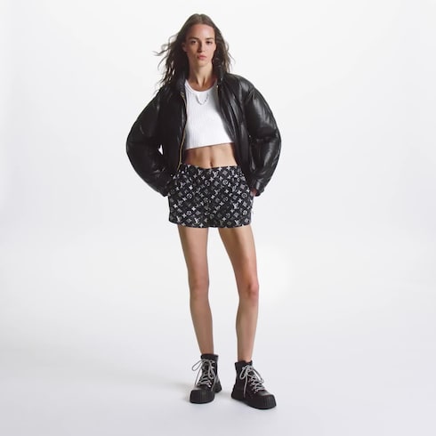 Estos shorts informales combinan una estética deportiva con el toque distintivo de Louis Vuitton de la temporada. La pieza está confeccionada en tejido técnico adornado con el motivo Monograma con el efecto estarcido característico de la colección. El modelo cuenta con una cintura elástica, un cierre de gancho y un bolsillo con cierre en cada lado.