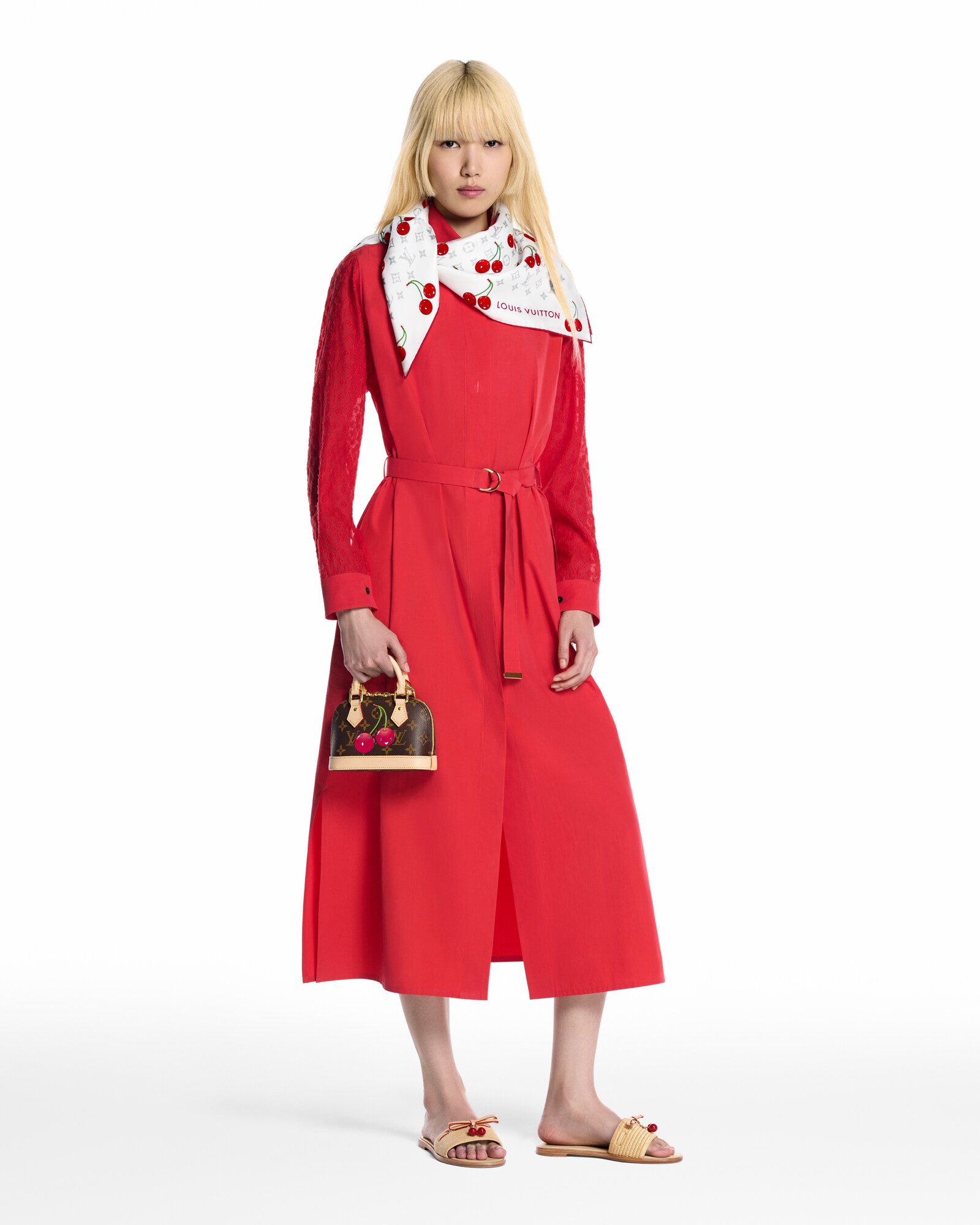 El pañuelo Monograma Cerise 90, confeccionado en pura seda, luce una reinterpretación de un clásico y emblemático distintivo de la Maison. Este modelo que forma parte de la segunda colaboración entre Louis Vuitton x Murakami luce unas coloridas cerezas sobre un fondo Monograma en el estilo vernáculo del artista japonés. La veraniega y alegre pieza es ideal para llevar a juego con cualquier otro accesorio de la colección.