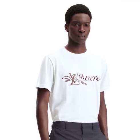 Esta playera blanca de cuello redondo y manga corta está inspirada en los paisajes campestres británicos. El modelo, confeccionado en una elegante mezcla de algodón y seda, luce un alegre motivo LV Lovers y un zorro con una flor Monograma. El sofisticado diseño se completa con un parche LV bordado en cuadros escoceces y otro con el distintivo "Marque L. Vuitton Déposée" en la parte posterior.