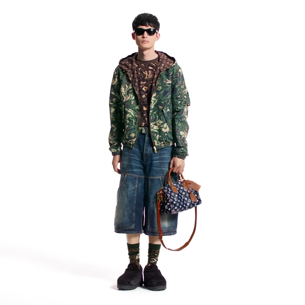 This graphic T-shirt is adorned with the LV Camo motif from the Fall-Winter 2025 show, executed in a complex jacquard jersey incorporating subtle Monogram signatures. Crafted in rich brown tones, it features a smart Marque L.Vuitton Déposée patch in VVN leather on the chest. The light and breathable cotton knit makes this a perfect buy-now-wear-now piece for hot weather.