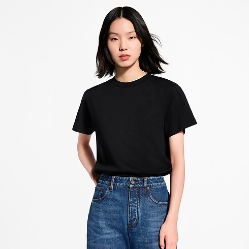 Esta camiseta eleva un básico atemporal gracias a su confección en punto de algodón suave con un corte ligeramente entallado. El cuello redondo se completa con un pañuelo de seda desmontable que muestra un estampado característico del interior de un baúl histórico de Louis Vuitton, como un elegante guiño a la herencia viajera de la Maison.