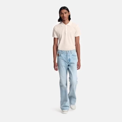 Esta polo está confeccionada en piqué de algodón orgánico. El diseño presenta un discreto motivo integral Damier en Jacquard y el distintivo Marque L.Vuitton Déposée bordado en el pecho del lado izquierdo. Esta clásica prenda incorpora tres botones de efecto nacarado que le confieren un toque dandy.