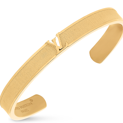 Esta pulsera LV Initiales está elaborada en metal de color dorado brillante y realza cualquier look con un toque de elegancia atemporal. El modelo luce una banda gruesa con las clásicas iniciales de la Maison con un llamativo efecto calado. La original pieza es ideal para usarse en cualquier ocasión.