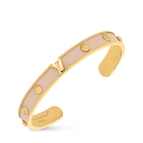 El llamativo diseño de la pulsera LV Initiales ofrece una variación creativa de un clásico distintivo Louis Vuitton. El modelo, elaborado en metal de color dorado, luce una banda con tachuelas forrada con piel colorida y se realza con las iniciales de la Maison con efecto calado. La pieza puede usarse sola o combinada, y le añade un toque de elegancia atemporal a cualquier conjunto.