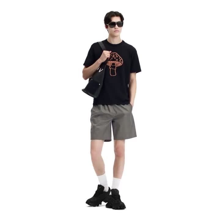 Esta elegante playera negra de manga corta y cuello redondo, confeccionada en un tejido fino de algodón certificado, aporta un acento gráfico a los looks casuales. El diseño presenta un alegre motivo de hongo en intarsia con distintivos Monograma en la parte delantera, y forma parte de la colección inspirada en la campañina británica. La pieza se completa con una etiqueta tejida con el distintivo «Marque L.Vuitton Déposée» en la parte trasera que brinda un toque sofisticado.
