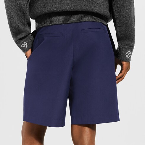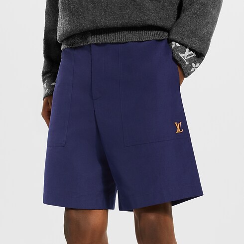 Estos atemporales shorts de estilo carpenter están confeccionados en una mezcla de algodón, lana y seda de color azul marino. El diseño presenta dos amplios bolsillos utilitarios decorados con un parche inspirado en la piel VVN. Ideal para complementar los atuendos de verano, esta prenda se puede llevar con su chamarra a juego para crear un elegante conjunto.