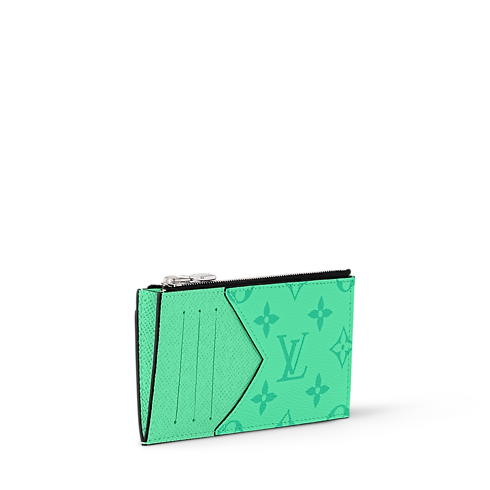 El tarjetero con monedero está confeccionado en colorido Canvas Monograma revestido y piel Taigarama a juego. El modelo luce cuatro ranuras para tarjetas, una de ellas con un diseño en V que une ambos materiales. Elegante y funcional, la pieza incorpora un bolsillo con cierre para monedas y un compartimento plano para billetes y recibos.