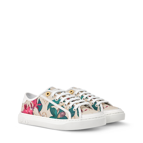 Esta edición de los tenis LV Lagoon está inspirada en el estampado Monograma Chintz de las bolsas del desfile Primavera-Verano 2026. El modelo luce una parte superior en Canvas Monograma con un romántico motivo floral. El diseño se complementa con cordones de color blanco y una suela de goma a tono con el distintivo Louis Vuitton.