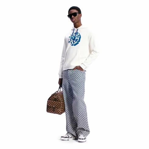 Estos tenis LV Trainer están confeccionados en una combinación de suave piel de becerro con el tejido denim Damier característico de la colección Otoño-Inviero 2025 para hombre. Este modelo evoca el calzado clásico de baloncesto y luce un exclusivo empeine elaborado con más de ochenta piezas. El diseño se adorna con el distintivo Louis Vuitton manuscrito y el número 54 en referencia al año de fundación de la Maison, en 1854.