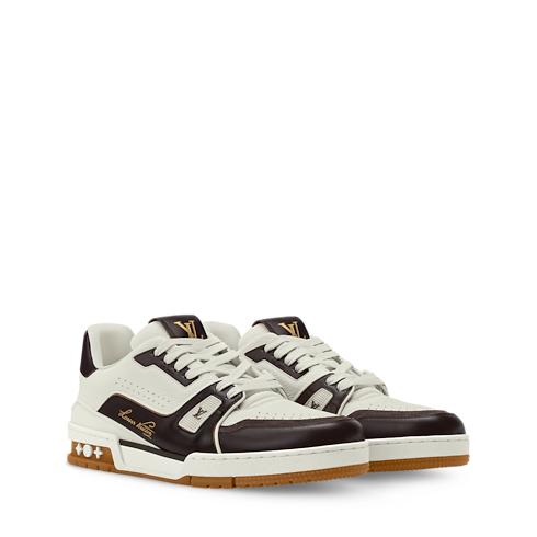 Esta reinterpretación de los tenis LV Trainer está confeccionada en piel de becerro que combina una textura granulada con un efecto envejecido. Inspirado en las versiones clásicas de basquetbol, el modelo luce un elaborado empeine con múltiples emblemas de la Maison. El calzado fusiona materiales clásicos con un diseño moderno y se completa con una suela de goma técnica con flores Monograma.