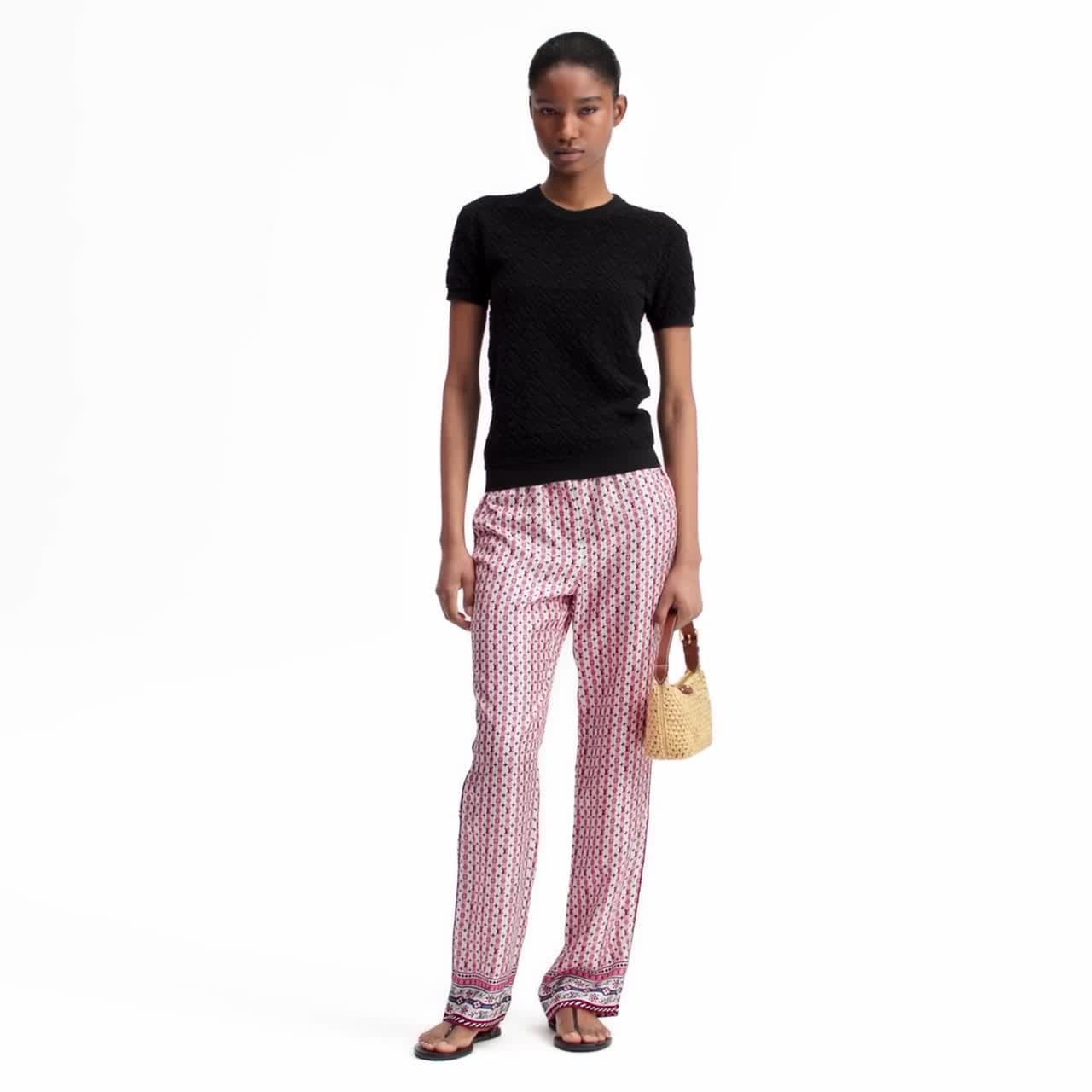 Este top de cuello redondo está confeccionado en suave mezcla de lana y algodón con acabado afelpado. El modelo luce un original motivo integral de flores Monograma en bajorrelieve como toque distintivo de la Maison. La pieza se completa con ribetes en punto elástico que añaden una sutil apariencia deportiva.