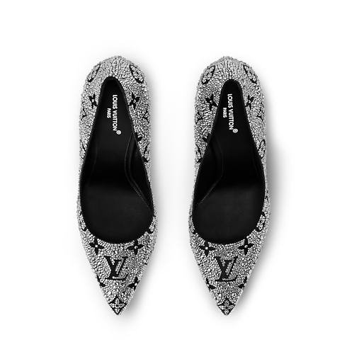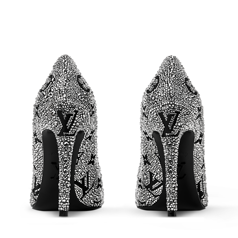 Este zapato de salón Gala está confeccionado en satén, que se realza con cristales que revelan el motivo Monograma de Louis Vuitton. Este modelo, de elegancia atemporal, destaca por su punta fina y su alto tacón de aguja, también recubierto de cristales. El diseño puede combinarse con una edición de la emblemática bolsa Capucines.