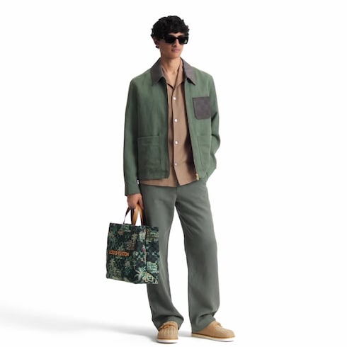 Jaket beritsleting yang bergaya workwear ini hadir dalam bahan linen twill ringan, sehingga cocok untuk melengkapi busana sehari-hari di musim panas. Bagian dadanya dilengkapi satu saku patch berbahan kulit dengan deboss corak Damier, sementara label Marque L.Vuitton Déposée signature dari material nubuck menghiasi bagian belakang. Desainnya yang berwarna dark green dapat dipadukan dengan celana panjang yang serasi.