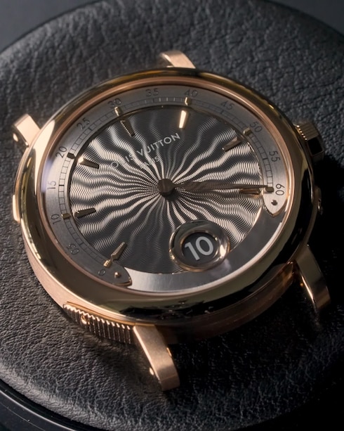 Sebuah ekspresi resonan dari savoir-faire Rumah Mode, Louis Vuitton Escale Minute Repeater memadukan kaliber manual in-house dengan tampilan jumping hour dan minute retrograde, mengambil inspirasi dari warisan bersama antara La Fabrique du Temps Louis Vuitton dan Gérald Genta. Mulai dari dial flammé guilloché yang memukau hingga jalur menit yang terinspirasi dari trunk, setiap detail merefleksikan dialog antara bentuk, suara, dan waktu.